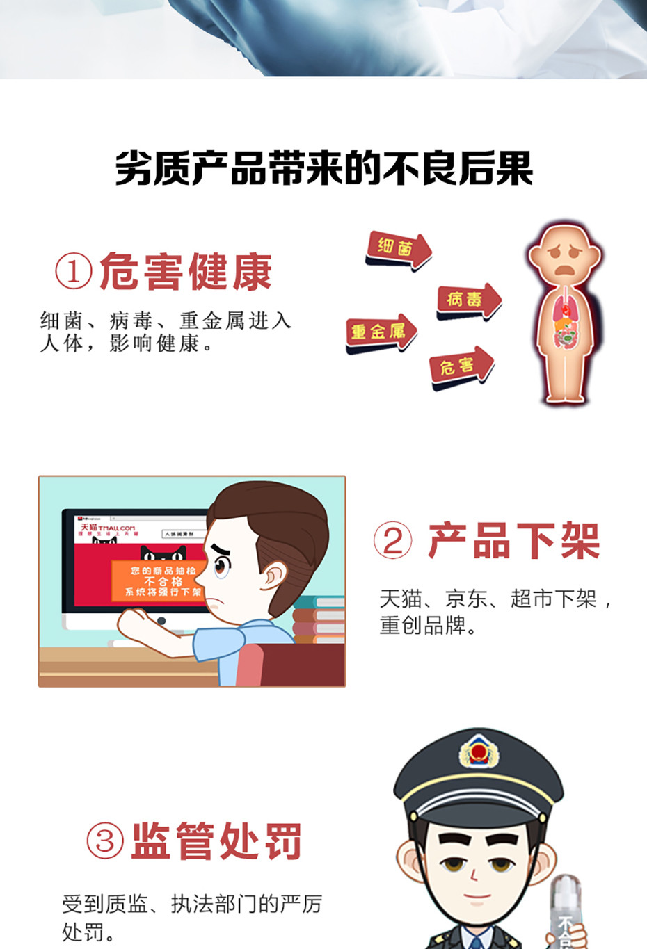嚴(yán)謹(jǐn)出精品!嚴(yán)格按照GMP生產(chǎn)規(guī)范!生產(chǎn)前原材料檢測(cè),確保原料合格。生產(chǎn)中半成品檢測(cè),確保生產(chǎn)過(guò)程無(wú)污染。生產(chǎn)后產(chǎn)品檢測(cè)并且出具出廠檢測(cè)報(bào)告,確保產(chǎn)品符合標(biāo)準(zhǔn),從原料到成品層層把關(guān),確保每一件均為精品。不怕被質(zhì)監(jiān)部門(mén)、電商平臺(tái)抽檢!